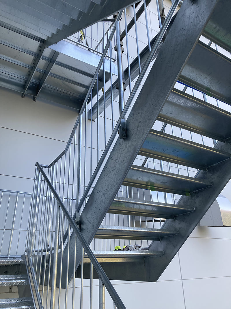 屋外に使用するスチール手摺は錆防止の為、メッキ処理することが多いです。