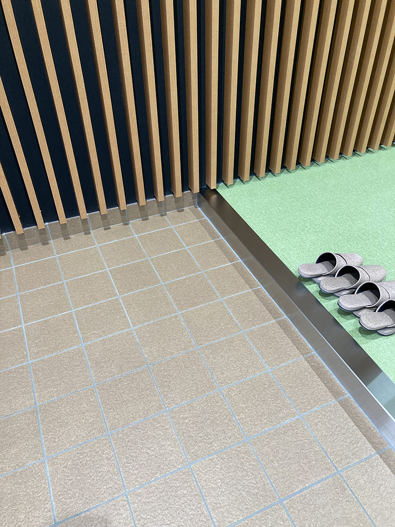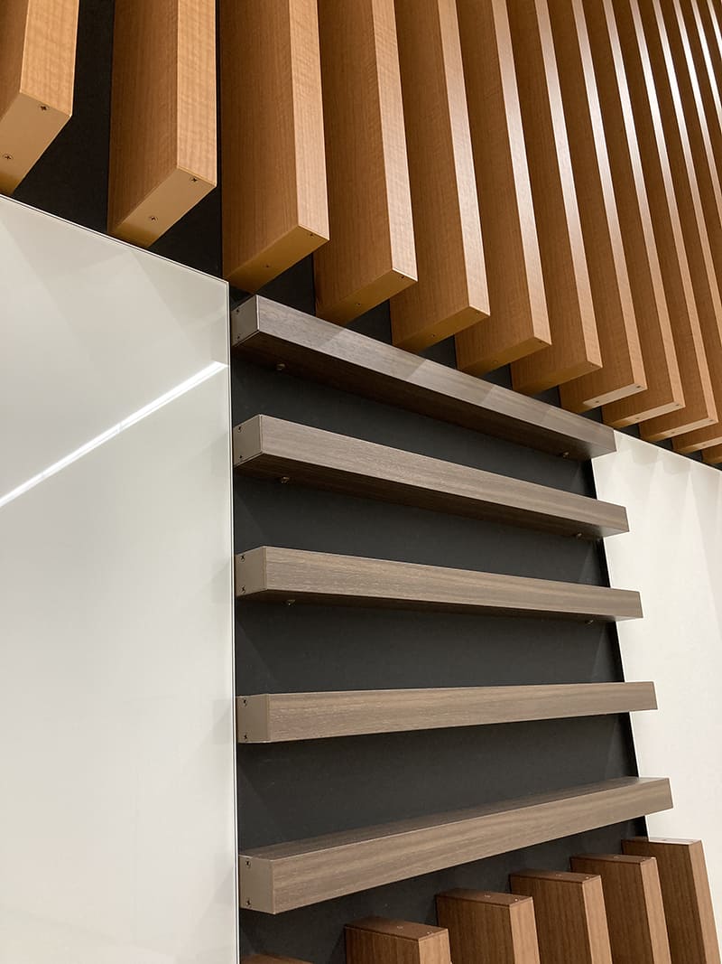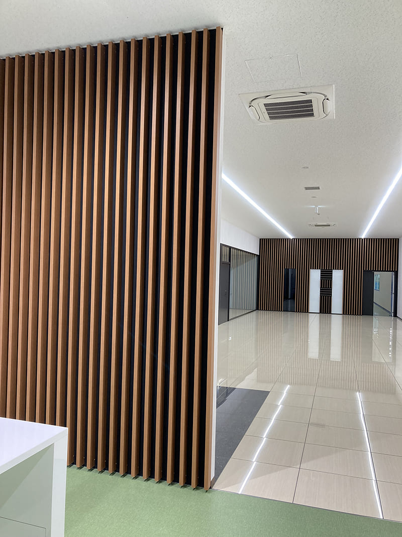 木目調のシートを貼った壁ルーバーです。シートの色や種類も様々選べます。